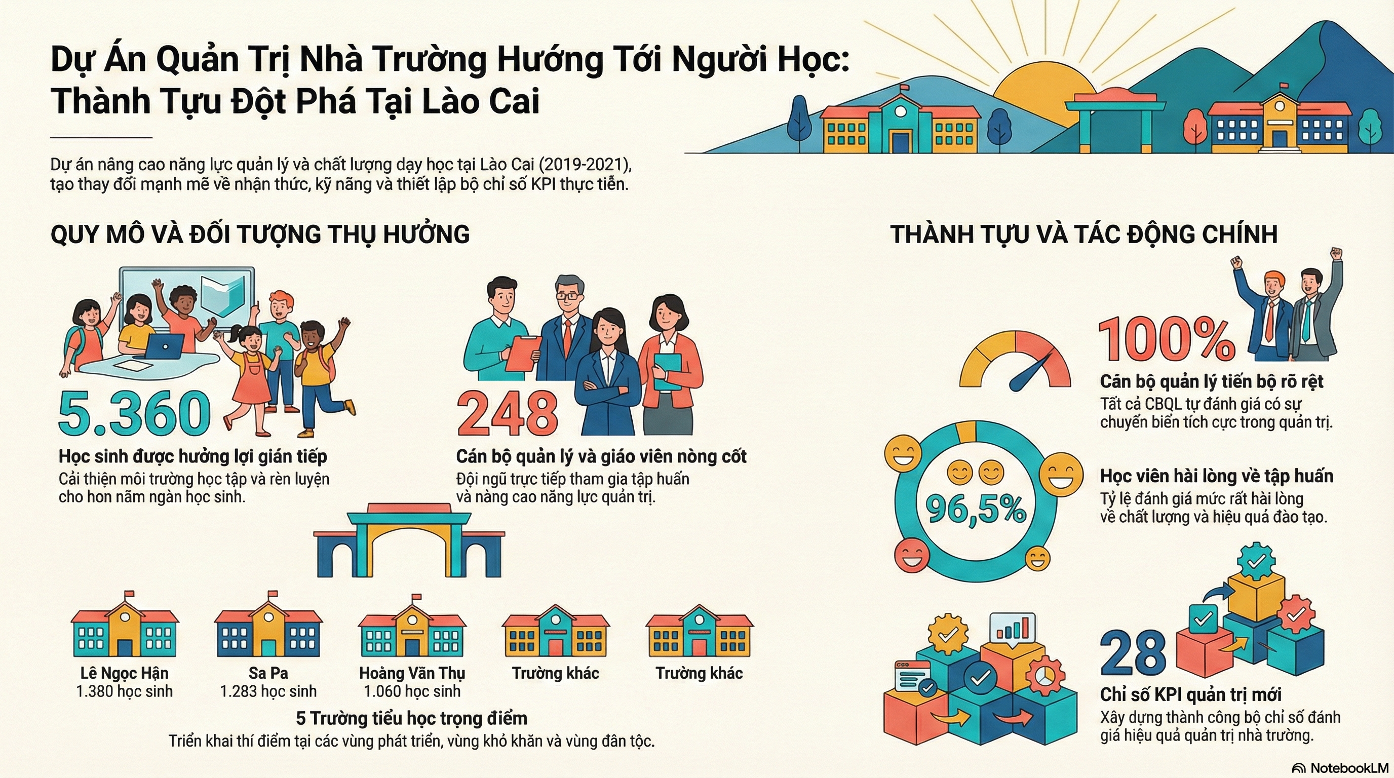 • Project Locations: 5 primary schools representing different regions of Lao Cai province: Hoang Van Thu PS, Le Ngoc Han PS, No. 1 Muong Khuong Town PS, No. 2 Gia Phu PS, and Sa Pa Town PS.